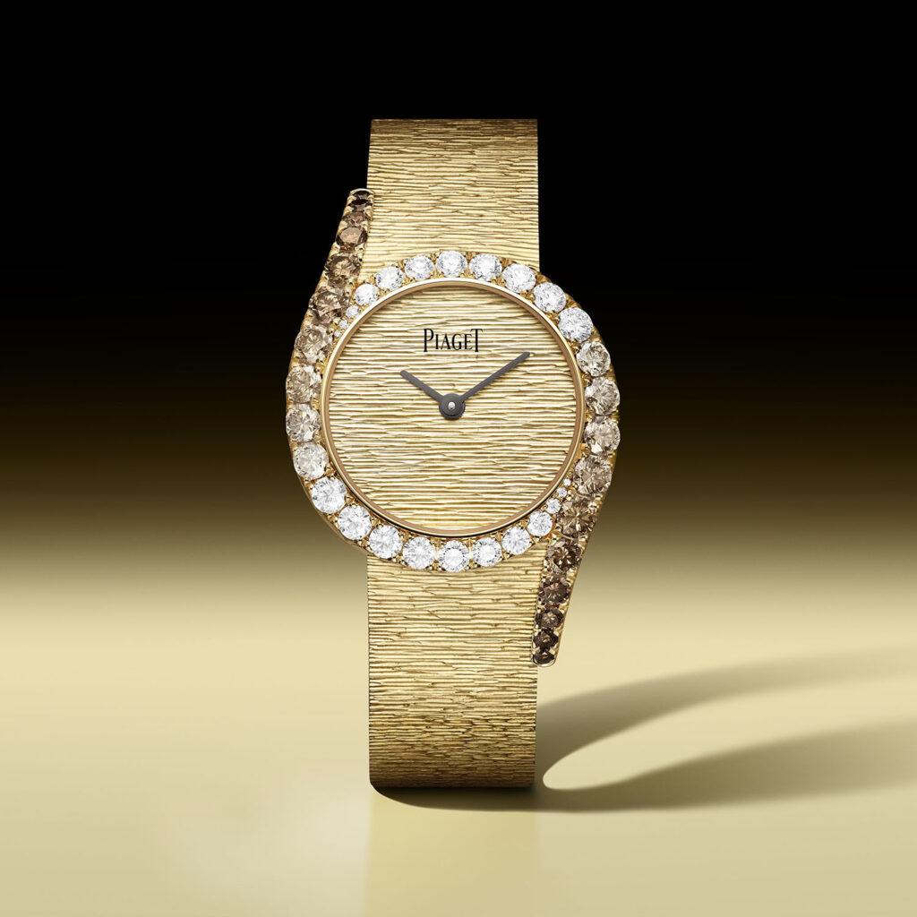 Компания Piaget издавна известна как мастер создания авангардных ювелирных часов. В 1973 году бренд представил изящные часы с корпусом овальной формы, асимметричными ушками и текстурированным золотым браслетом. Создал эти часы Жан-Клод Геит и впоследствии они стали называться Limelight Gala.