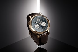 Первая часть его названия, DATOGRAPH, обозначает хронограф с датой негабаритного размера Ланге. Механизм flyback позволяет быстро измерять время подряд, потому что три шага переключения останавливаются, сбрасываются до нуля и начинают выполняются одним нажатием кнопки. Счетчик минут обеспечивает недвусмысленные показания остановленного времени в любой момент времени: он прыгает к следующему приращению в тот самый момент, когда секундная стрелка хроно завершает 60-ю секунду.