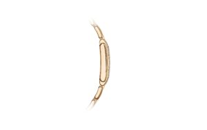 Оригинальную форму прямоугольного двухуровневого корпуса подчеркивают два ряда бриллиантов классической огранки (0,63 карата), по 17 в каждом, расположенных по обе стороны циферблата.