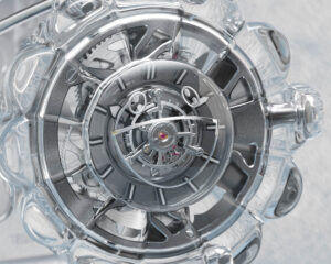 Hublot разработал турбийон без верхнего моста. Все его компоненты скелетированы. Это позволяет легко оценить, сколько работы было потрачено на разработку модели MP-15, в которой видны некоторые шестерни и все компоненты турбийона, которые кажутся парящими в пространстве.