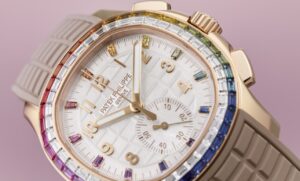 Patek Philippe пополнил свою женскую линию хронографом Aquanaut Luce «Rainbow» реф. 7968/300R-001, первым женским хронографом Patek Philippe с автоматическим подзаводом.