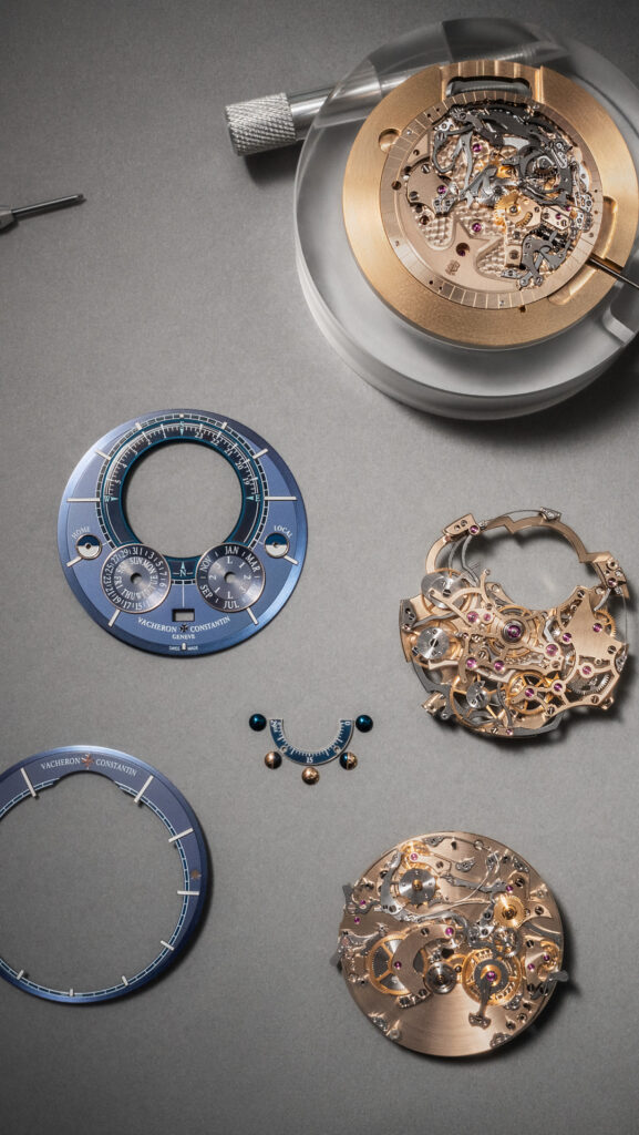 Букет заявленных функций включает минутный репетир и турбийон. Управляет этим сложным оркестром новый калибр 2756-B1. Механизм, на разработку которого ушло 4 года, является производным от калибра 2756, представленного в 2020 году. База механизма, которая управляет минутным репетиром и турбийоном, осталась почти без изменений, в то время как два добавленных модуля были практически созданы с нуля. Один из них управляет вечным календарем и картой звездного неба, второй обслуживает 6 астрономических индикаций.